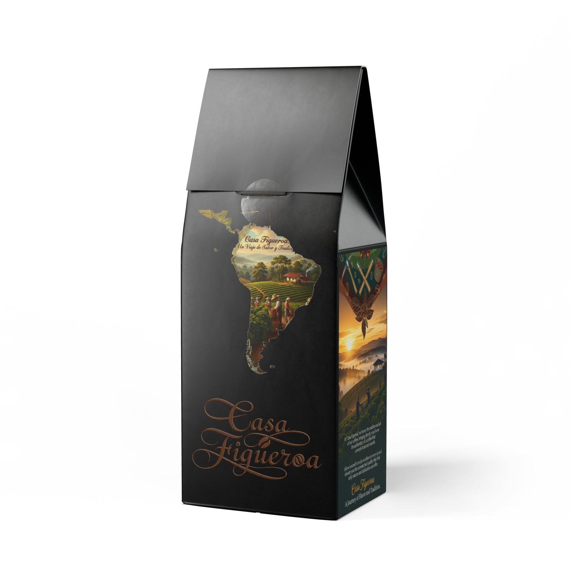 More than coffee — a gift of elegance. Our beans are carefully handpicked in the highlands of South America, roasted to perfection, and crafted for those who appreciate refined taste. With a smooth, bold character and notes of bittersweet chocolate, Casa Figueroa transforms every cup into a moment of sophistication.